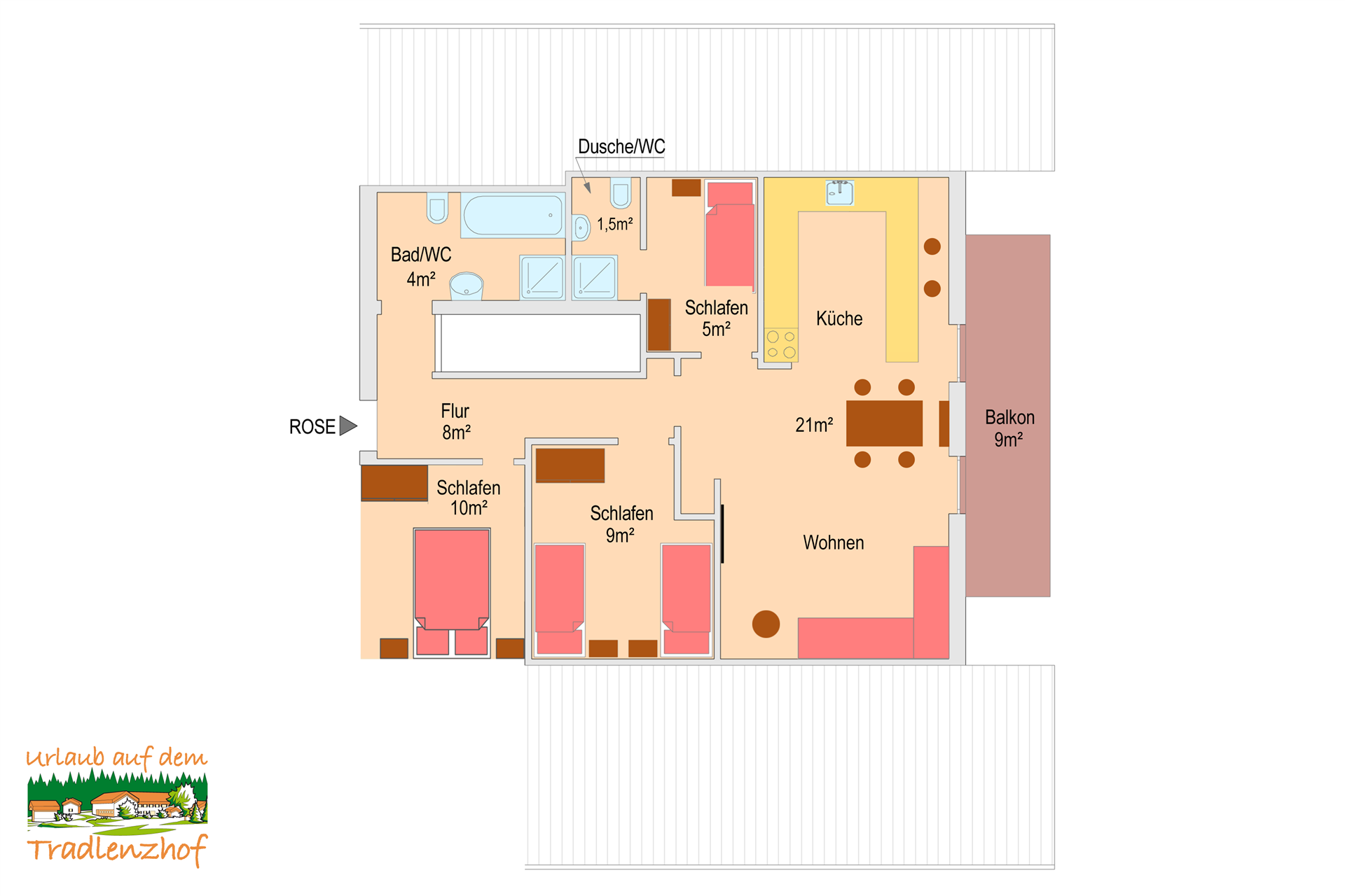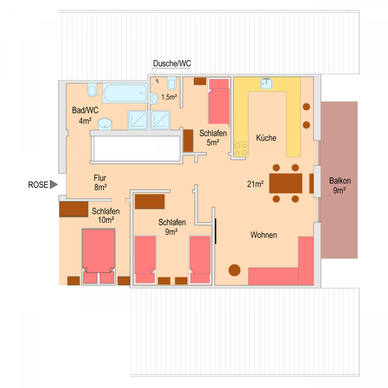 Ferienwohnung für 2-5 Personen 70m² mit großem Balkon